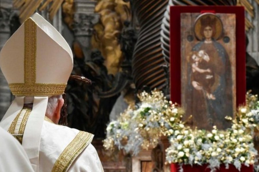 As palavras do apóstolo Paulo iluminam o início do novo ano: «Quando chegou a plenitude do tempo, Deus enviou o seu Filho, nascido de uma mulher» (Gal 4, 4). Impressiona a expressão «plenitude do tempo». Antigamente era costume medir o tempo esvaziando e enchendo ânforas: quando estavam vazias, começava um novo período de tempo, que terminava quando estivessem cheias. Vemos nisto a plenitude do tempo: quando a ânfora da história está cheia, a graça divina transborda. Deus faz-Se homem e faz-Se através de uma mulher, Maria. Ela é o caminho escolhido por Deus; Ela é o ponto de chegada de muitas pessoas e gerações que, «gota a gota», prepararam a vinda do Senhor ao mundo. Deste modo a Mãe está no coração do tempo: aprouve a Deus fazer a viragem da história através d’Ela, a mulher. Com esta palavra, a Escritura remete-nos para as origens, para a génese, e sugere-nos que a Mãe com o Menino assinala uma nova criação, um novo início. Portanto, no início do tempo da salvação, temos a Santa Mãe de Deus, a nossa Mãe santa.