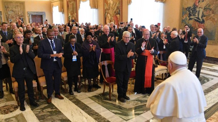 Queridos amigos, o tema que vocês estão abordando é desafiador, e as duas formas pelas quais pretendem fazê-lo também são desafiadoras. Em primeiro lugar, vejo em vocês o esforço de realizar um diálogo efetivo, um intercâmbio transdisciplinar na forma descrita pela Veritatis gaudium como “colocação e fermentação de todo conhecimento dentro do espaço de Luz e Vida oferecido pela Sabedoria que emana da Revelação de Deus” (n. 4c). Aprecio que vossa reflexão ocorra na lógica de um verdadeiro “laboratório cultural onde a Igreja pratica a interpretação performativa da realidade que emerge do evento de Jesus Cristo e se alimenta dos dons da Sabedoria e Ciência com os quais o Espírito Santo enriquece o Povo de Deus” (ibid., 3). Por isso, encorajo essa forma de diálogo, e este diálogo permitirá que cada um apresente suas considerações interagindo com os outros em uma troca recíproca. Esta é a maneira de ir além da justaposição de conhecimentos, iniciando uma reconfiguração do conhecimento através da escuta mútua e reflexão crítica.