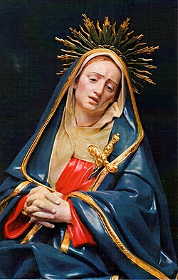 São Bernardino de Sena, por sua vez, destaca a magnitude do sofrimento de Nossa Senhora. Ele afirma que, se ajuntássemos todas as dores do mundo, ainda assim não se igualariam às penas da Virgem gloriosa.