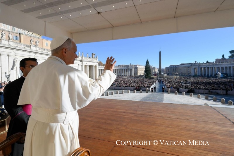 O Concílio Vaticano II ensinou-nos a ler os sinais dos tempos: diz-nos que ninguém consegue fazê-lo sozinho, mas juntos, na Igreja e com muitos irmãos e irmãs, leem-se os sinais dos tempos. São sinais de Deus, de Deus que vem com o seu Reino, através das circunstâncias históricas. Deus não está fora do mundo, fora desta vida: aprendemos na primeira vinda de Jesus, Deus-connosco, a procurá-lo entre as realidades da vida. Procurá-lo com inteligência, coração e mangas arregaçadas! E o Concílio disse que esta missão é de modo particular dos fiéis leigos, homens e mulheres, porque o Deus que se encarnou vem ao nosso encontro nas situações de cada dia. Nos problemas e nas belezas do mundo, Jesus espera-nos e envolve-nos, pede-nos que trabalhemos com Ele. É por isso que esperar é participar!