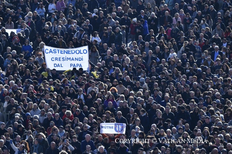 Saúdo também os grupos paroquiais de Lentiai, Manerbio, Santa Cesarea Terme, Cerfignano, Roverchiara e Roverchiaretta; os jovens de Marostica e Pianezze, os crismandos de Cavaion Veronese, os jovens do Oratório de Mezzocorona, o grupo de acólitos de Bolonha e os sócios da Associação Madonna del Granato.