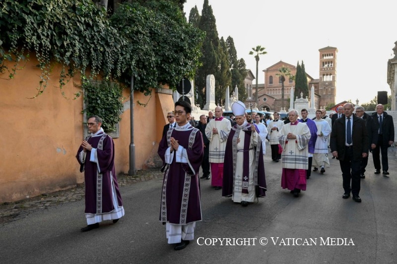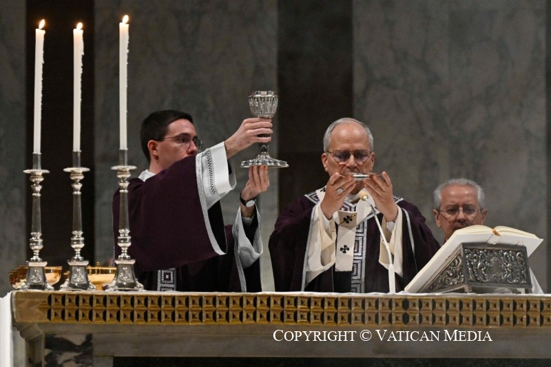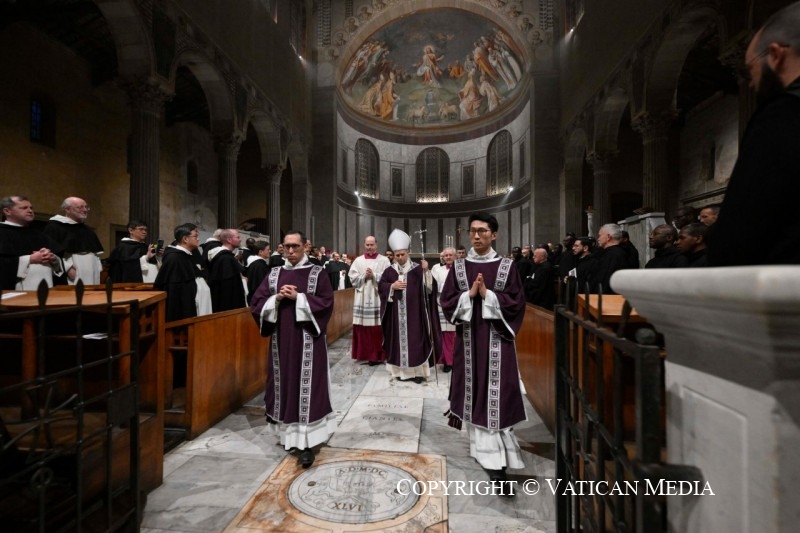 Por isso, os mártires antigos e contemporâneos brilham como pioneiros do nosso caminho rumo à Páscoa. A antiga tradição romana das stationes quaresmais – da qual esta de hoje é a primeira – é educativa: remete tanto para o movimento, como peregrinos, quanto para a estação – statio – junto às “memórias” dos Mártires, sobre as quais se erguem as basílicas de Roma. Não é, porventura, um convite a colocarmo-nos nas pegadas dos testemunhos admiráveis que agora se espalham por todo o mundo? Reconhecer lugares, histórias e nomes de quem escolheu o caminho das Bem-aventuranças e levou até ao fim as suas consequências. Uma miríade de sementes que, mesmo quando pareciam perdidas, sepultadas na terra, prepararam a messe abundante que nos cabe colher. Como nos sugeriu o Evangelho, a Quaresma, libertando-nos do desejo de sermos vistos a todo o custo (cf. Mt 6, 2.5.16), ensina-nos a ver antes o que nasce, o que cresce, impelindo-nos a servi-lo. É a profunda sintonia que, no segredo de quem jejua, reza e ama, se estabelece com o Deus da vida, Pai nosso e de todos. A Ele redirecionemos, com sobriedade e alegria, todo o nosso ser, todo o nosso coração.