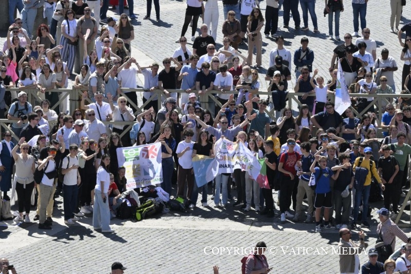 Saúdo cordialmente todos vós, queridos peregrinos vindos de Itália e de diversos países. Saúdo, em particular, os jovens do Arciprestado de Appiano Gentile. Lembro todos os que, em diferentes partes do mundo, participam nas iniciativas promovidas por ocasião do Dia Internacional do Desporto para o Desenvolvimento e a Paz, renovando o apelo para que o desporto, com a sua linguagem universal de fraternidade, seja um espaço de inclusão e de paz.