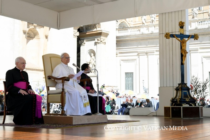 Renovo a todos o convite a unir-se a mim na Vigília de oração pela paz que celebraremos aqui na Basílica de São Pedro no sábado, 11 de abril.