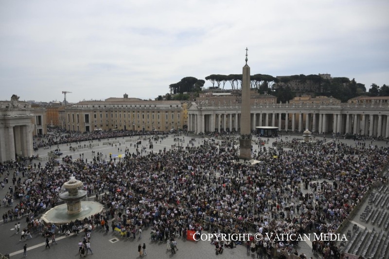 Hoje, muitas Igrejas orientais celebram a Páscoa segundo o calendário juliano. A todas essas comunidades dirijo os meus mais cordiais votos de paz, em comunhão de fé no Senhor Ressuscitado. Acompanho-os com uma oração ainda mais intensa por todos aqueles que sofrem devido à guerra, em particular pelo querido povo ucraniano. Que a luz de Cristo traga consolo aos corações aflitos e fortaleça a esperança de paz. Nunca falte a atenção da comunidade internacional perante o drama desta guerra!