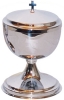 ![]() | GALHETAS: Recipientes onde se coloca a água e o vinho para serem usados na Celebração Eucarística. | ![]() | TECA: Pequeno recipiente onde se leva a comunhão para pessoas impossibilitadas de ir à Missa. |