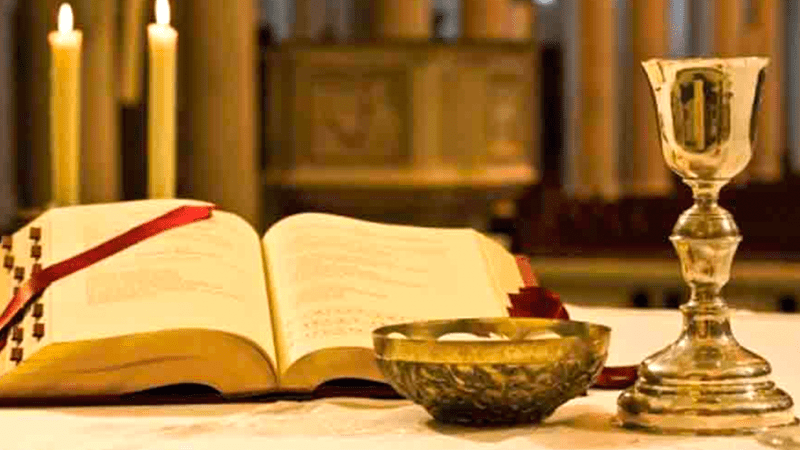 Depois de ter reunido os seus Apóstolos no Cenáculo, Jesus tomou nas suas mãos o pão, partiu-o e o deu a eles, dizendo: “Tomai todos e comei: isto é o meu corpo que será entregue por vós”. Depois tomou nas suas mãos o cálice do vinho e lhes disse: “Tomai todos e bebei: este é o cálice do meu sangue, o sangue da nova e eterna aliança, que será derramado por vós e por todos para remissão dos pecados. Fazei isto em memória de mim”.